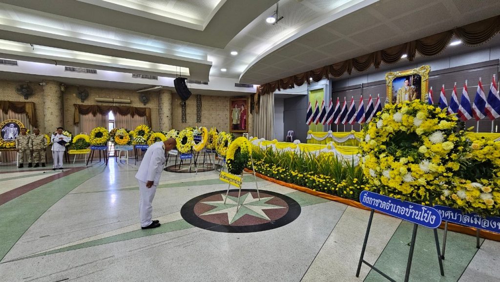 วันนี้ 13 ต.ค.67 พ.ต.อ.ปิยะพงษ์ วงค์เกตุใจ ผกก.สภ.บ้านโป่ง ได้ร่วมพิธีทำบุญตักบาตรถวายพระราชกุศล และ พิธีวางพวงมาลาราชสักการะ เพื่อน้อมรำลึกพระมหากรุณาธคุณในพระบามสมเด็จพระบรมชนกาธิเบศร มหาภูมิพลอดุลยเดชมหาราช บรมนาบพิตร ในวันคล้ายวันสวรรคต ในวันที่ 13 ต.ค. 2567 ณ ศาลาประชาคม เทศบาลเมืองบ้านโป่ง